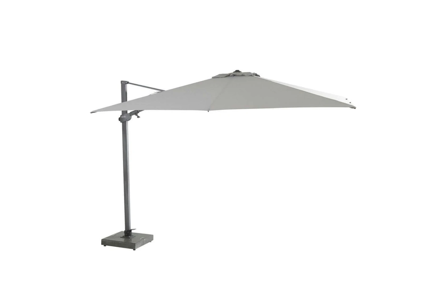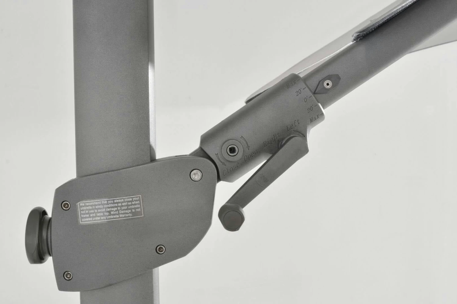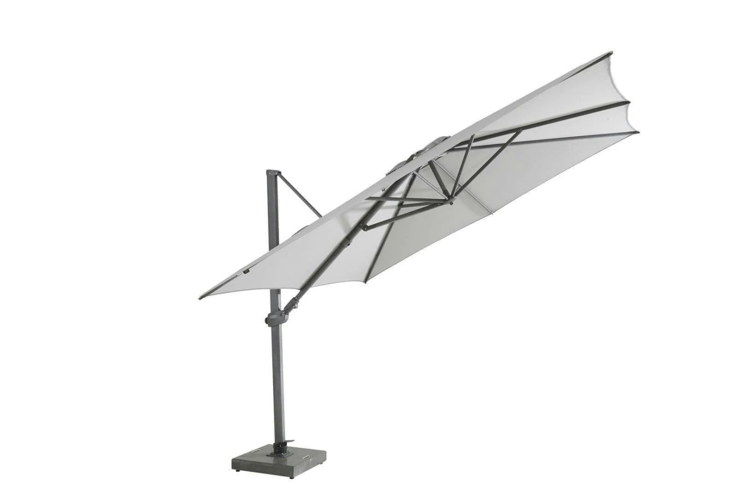 Onze Siesta parasol met extra kantelbare functie: Siesta Premium. Deze veelzijdige zweefparasol heeft een degelijk frame van aluminium, verkrijgbaar in Antraciet of Witte poedercoating. Er zijn diverse functionaliteiten om op uw terras met het grootste gemak schaduw te verzorgen op de gewenste plek. De vrij hangende parasol is makkelijk draaibaar op zijn parasolvoet door een pedaal. Met een eenvoudige draaiknop kunt u de parasol richting het frame kantelen. Door met de hendel te draaien kunt u deze parasol ook nog beide kanten uit zwenken. In een extra ingang is met de hendel de parasol uit -en in te klappen tot een compact pakket. Behalve deze vernuftige functies gebruiken we hoogwaardige, weerbestendige materialen. Het Olefin parasol doek is bestand tegen een regenbui en blijft lang mooi van kleur. Plaats uw parasol op een van onze granieten voeten of kies voor een grondanker: de Siesta Premium parasol zorgt voor jarenlang tuin plezier op uw terras. De vrij hangende parasol is verkrijgbaar met een Charcoal / Taupe / Mid Grey gekleurd parasol doek.