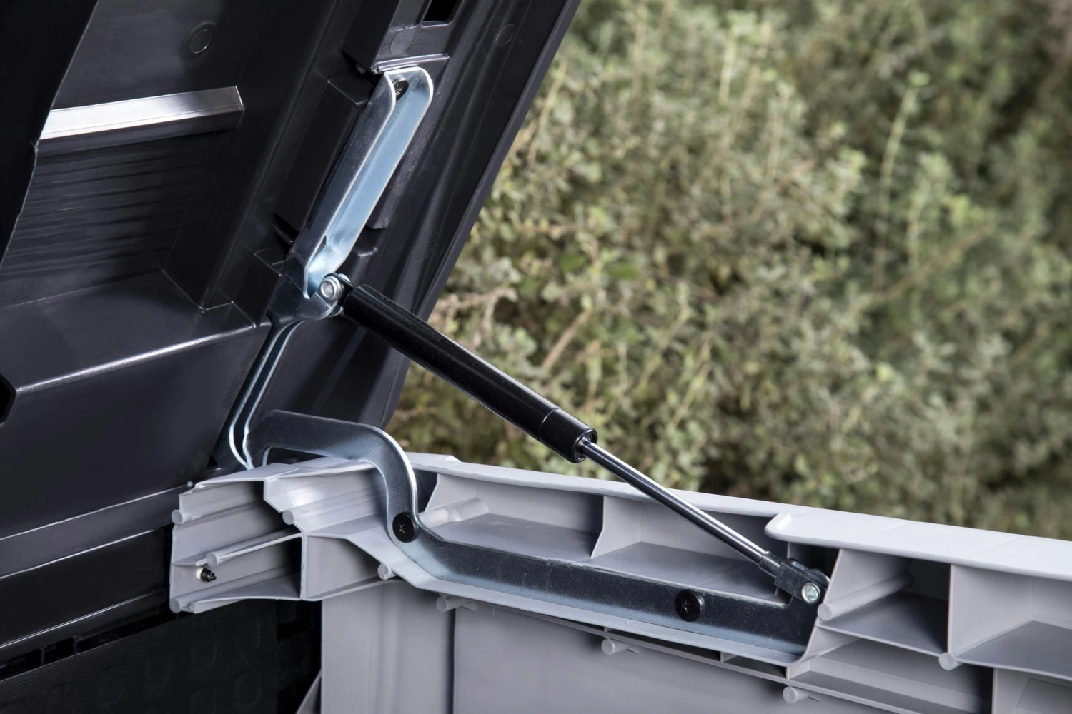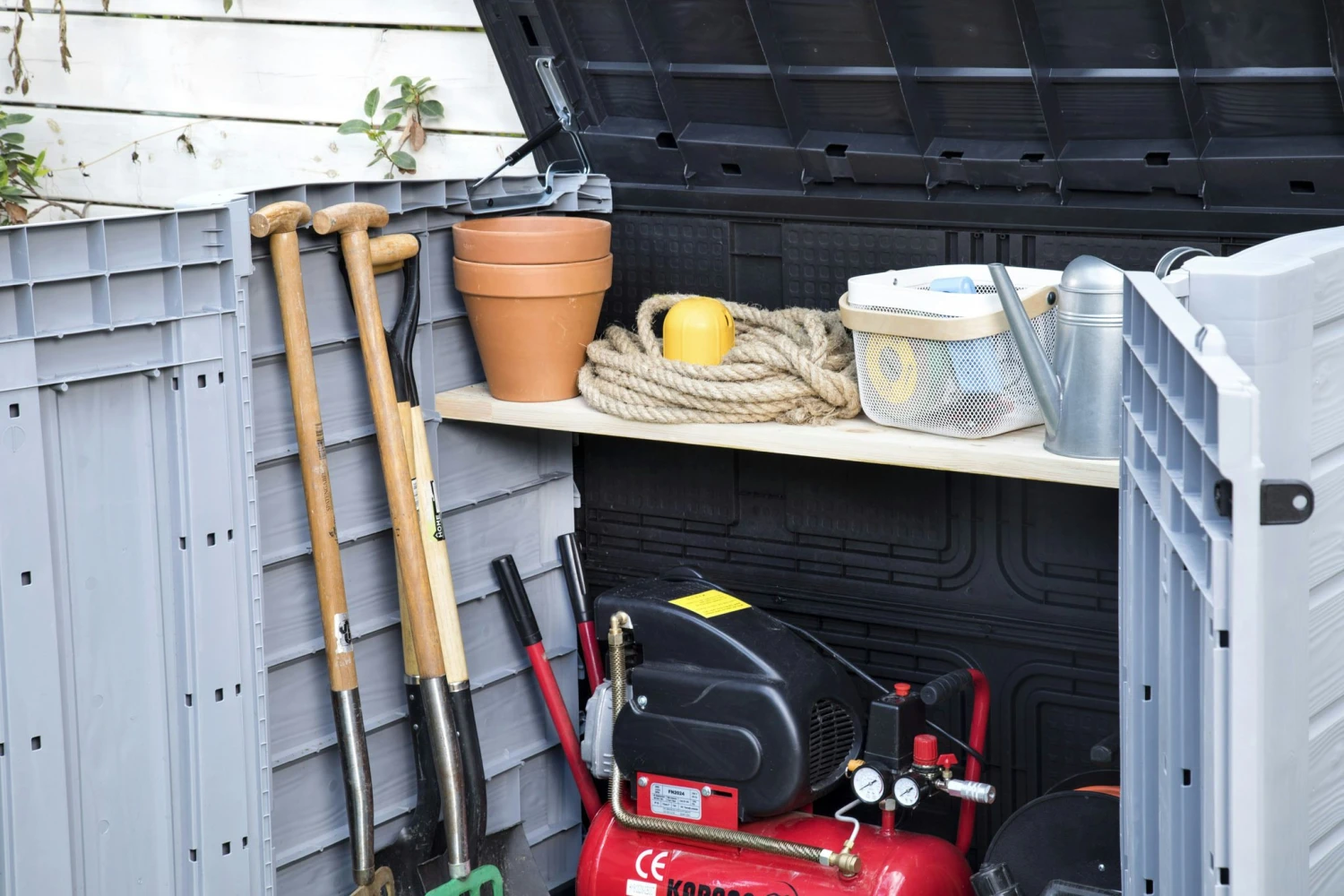 Weet jij niet waar je al jouw tuinspullen op moet slaan? Deze handige opbergbox van het merk Keter biedt de oplossing. De opbergbox heeft een capaciteit van 1200 liter en is daarmee perfect geschikt voor het opbergen van tuingereedschap, kussens, buitenspeelgoed of 2 containers van 240 liter. De weerbestendige constructie zorgt ervoor dat je spullen droog en geventileerd blijven. Voor extra gemak is er een hellende drempel aan de voorkant van de opbergbox gemaakt zodat je de spullen gemakkelijk in en uit de berging kunt halen. Ideaal aan deze opbergbox is dat er zowel vanaf de bovenkant als aan de voorkant toegang tot de berging is. De bovenkant is voorzien van een deksel die gemakkelijk te openen is dankzij de hydraulische veren. Aan de voorkant zitten 2 afsluitbare deuren zodat je ook gemakkelijk je grasmaaier of barbecue er in kunt rijden. Na ontvangst dient de Keter Store-it-out Ace nog gemonteerd te worden. Dit is eenvoudig uit te voeren met behulp van de meegeleverde handleiding.