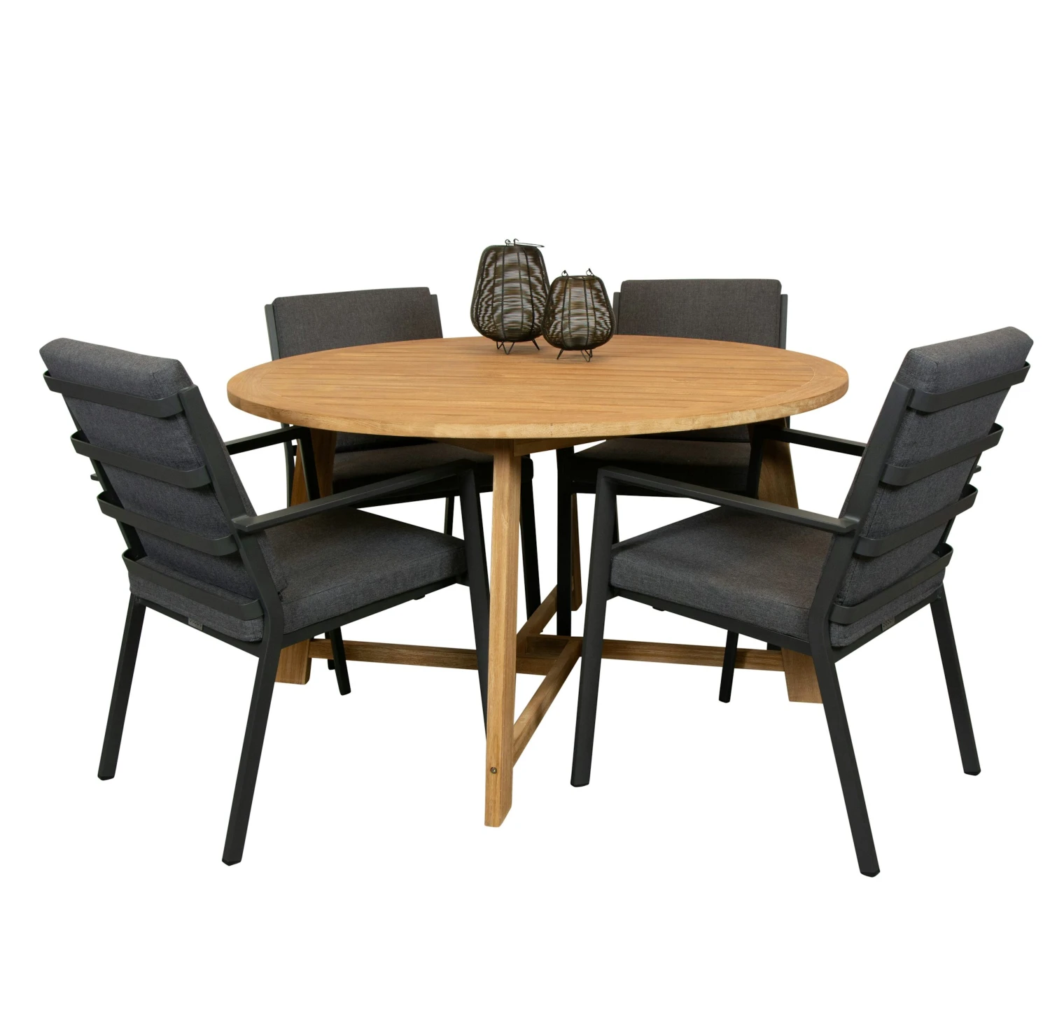 Deze mooie ronde tafel heeft een zeer goede kwaliteit teak. Deze teak is een old wash finisch, wat een zeer warme kleur geeft. Deze tafel is zeker mooi in combinatie met verstelbare of stapelstoelen. Bijvoorbeeld is het heel mooi in combinatie met een royale wicker stoel. Hoogte 78cm.