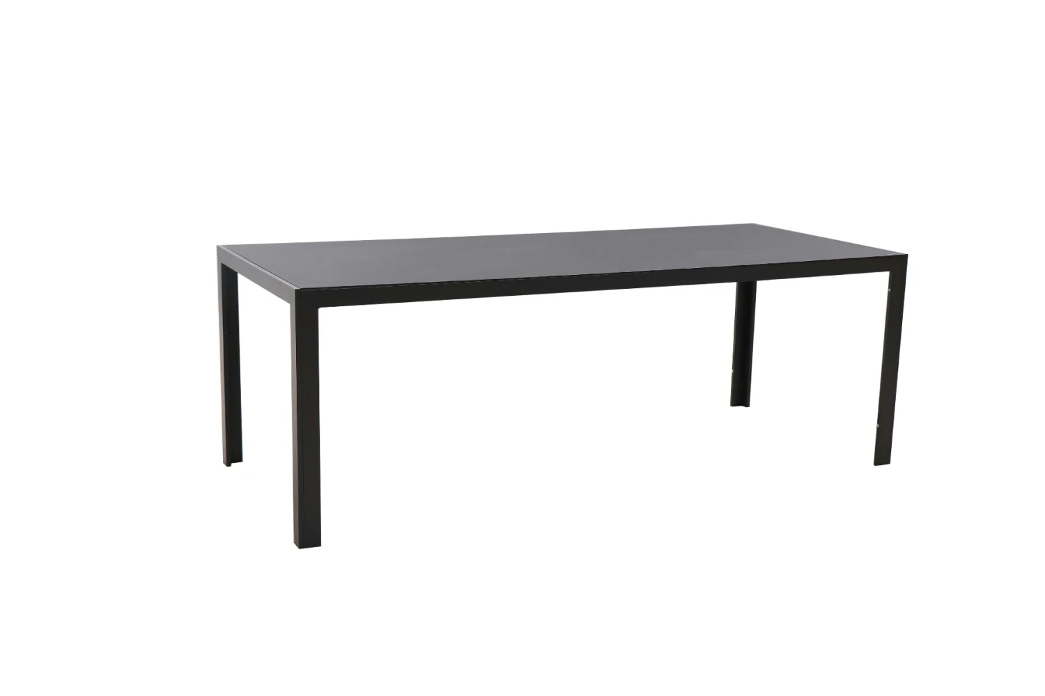 Het frame van deze prachtige tafel is van aluminium gepoedercoat in de kleur antraciet. Het blad wat erop ligt is van 6mm veiligheidsglas met een printing top die een graniet look weergeeft. Daardoor is het ook minder gevoelig voor krassen.