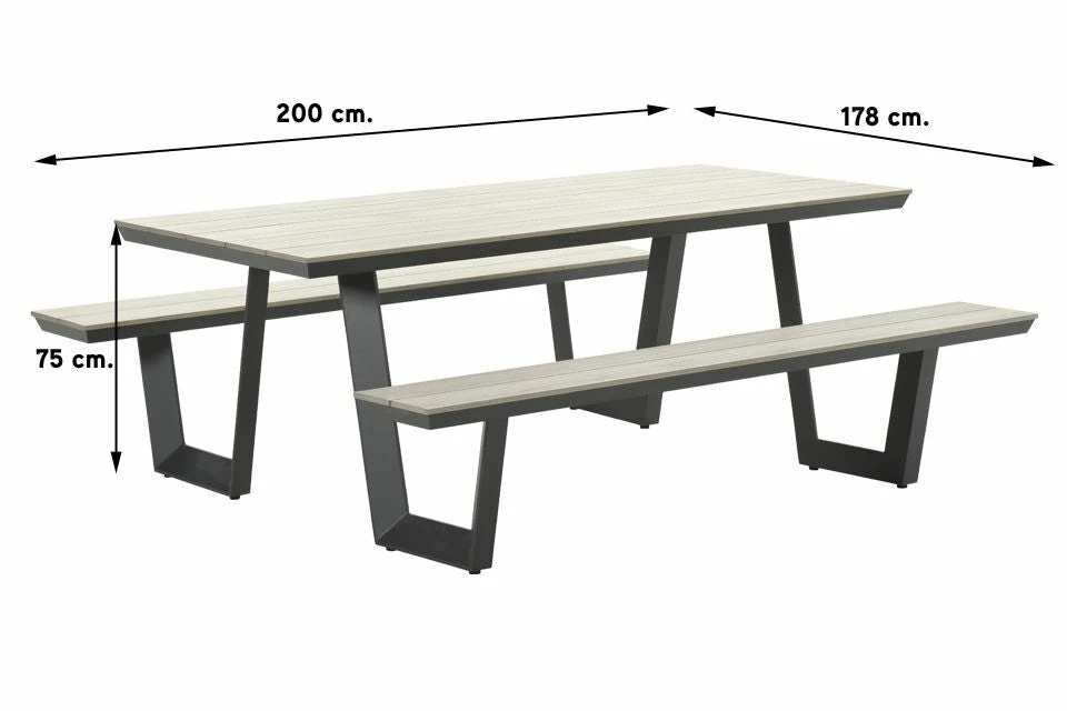 Tafel – breedte blad+banken 178 cm
