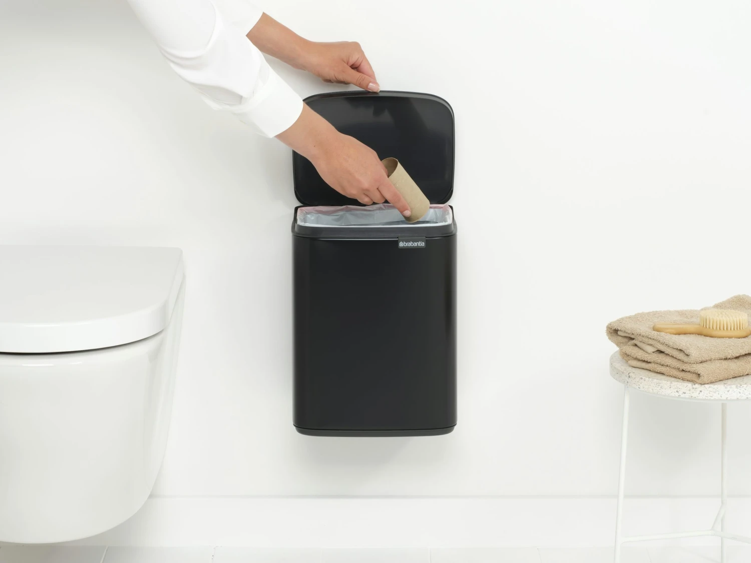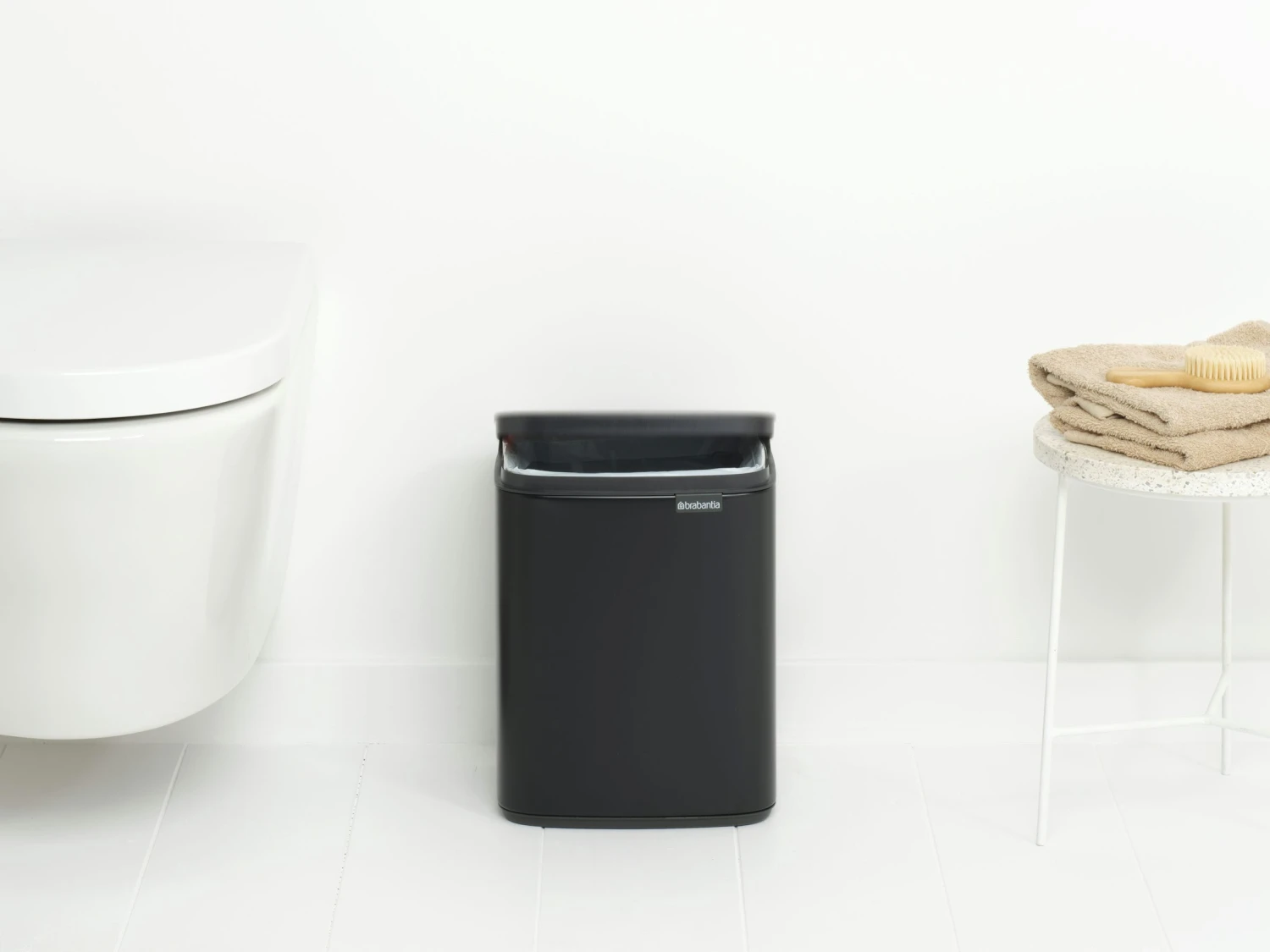 Niet te groot, niet te klein, maar precies goed. Dat is de Brabantia Bo Afvalemmer 7 liter! Zet ‘r in een hoek, of hang ‘r aan de muur. Waar je maar wilt, want je tilt de deksel eenvoudig op vanaf de linker-, rechter- en voorkant van de bak. Dus geen spieren meer verrekken om iets weg te gooien. Een sprookje van een prullenbak!Voordelen & Kenmerken
