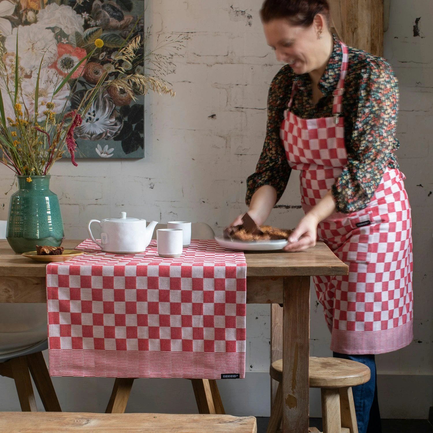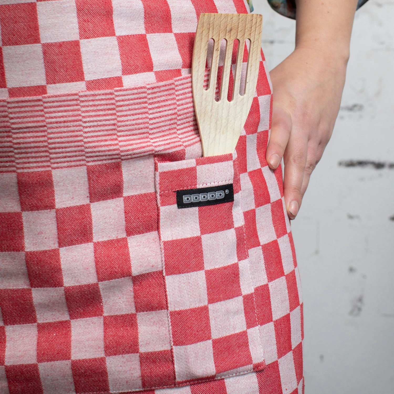 De Barbecue serie is aangevuld met de populaire geruite pompdoek schort! De 100% kwaliteitskatoen is gemakkelijk te wassen, van duurzame kwaliteit en daarom vaak te gebruiken. Het schort bevat twee voorvakken die ruimte bieden om kookgerei, kruiden of een DDDDD theedoek op te bergen. Verder is het schort voorzien van een nekband met een handige bretelclip sluiting en is de tailleband verstelbaar. Het schort heeft de afmeting 90 x 85 cm en is een ‘one size fits all’.