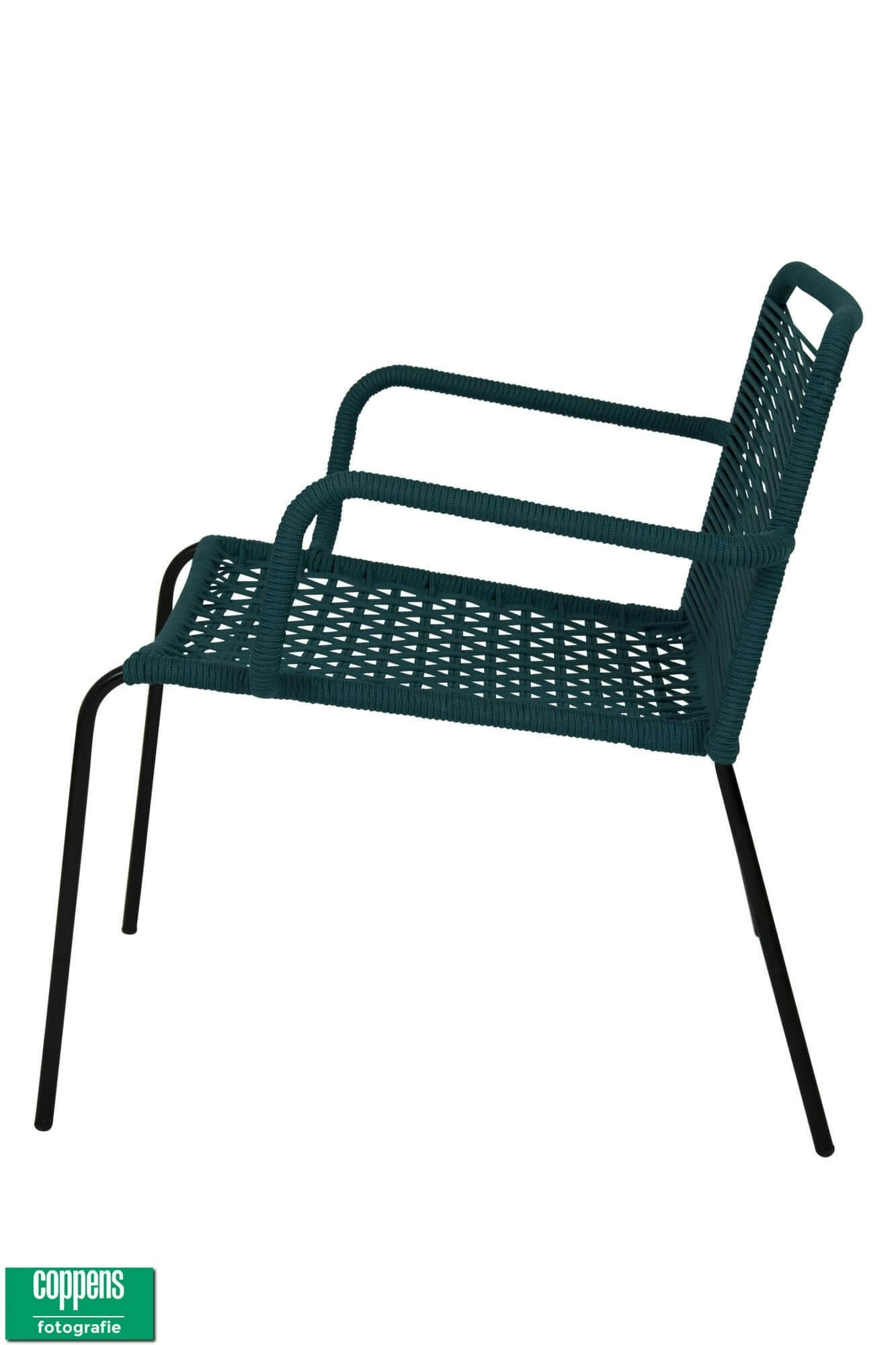 Deze dover lounge stoel is een mooie hippe relax stoel die gemaakt is van petrol rope (touw). De stoel is heel gemakkelijk op te bergen, omdat hij stapelbaar is. Het frame van de stoel is van staal en is 1.2cm rond. Dit is ook gepoedercoat met antraciet. De stoel kunt u gewoon buiten laten staan aangezien het van weerbestendig touw is gemaakt. Ook heeft de stoel een goed zitcomfort. Deze loungestoel is makkelijk om ergens bij te zetten waardoor u een leuk hoekje kunt creëren.
