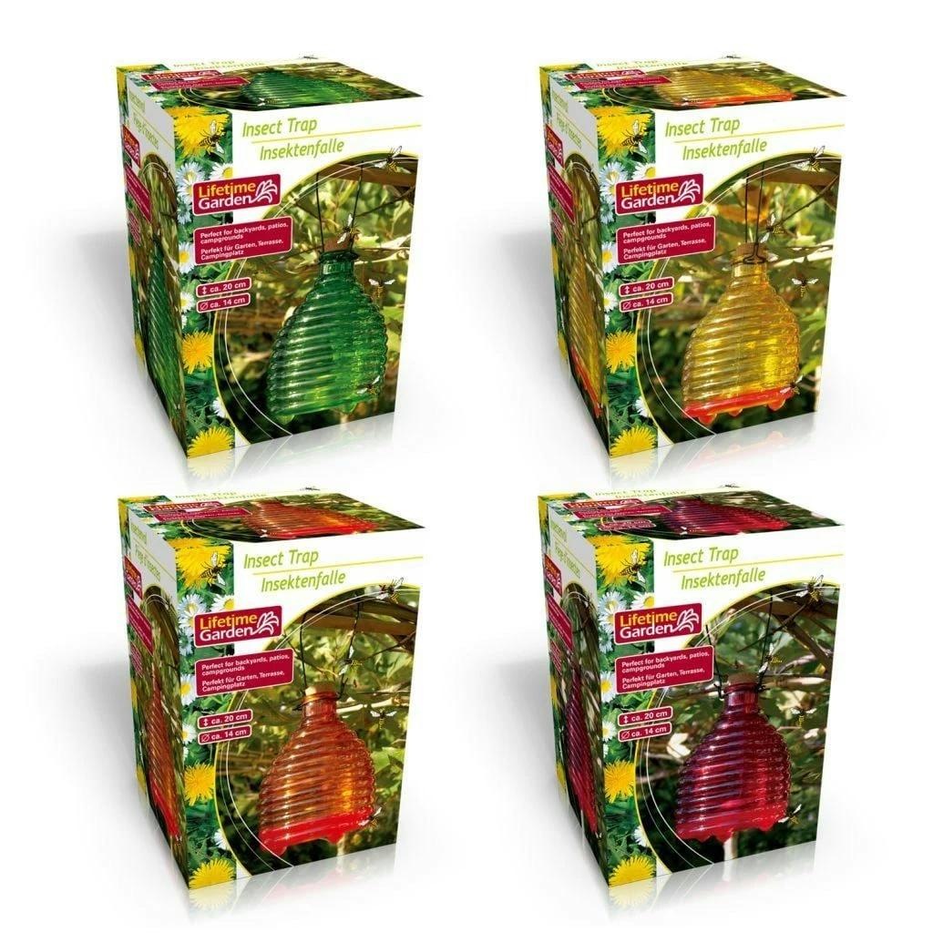 Glazen fles voor het vangen van wespen. Met bijvoorbeeld, een speciaal lokmiddel er in plaatst u de wespenvanger in de nabije omgeving zodat de wespen u met rust laten en zichzelf opsluiten in de wespenvanger. Formaat: 18 x 12 cm. Lokmiddel niet inbegrepen.