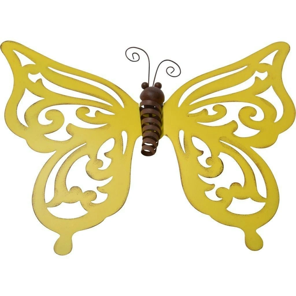 Vlinder 44x34x3cm, geel. Mooie decoratie voor aan de muur, in uw tuin maar ook voor binnen.