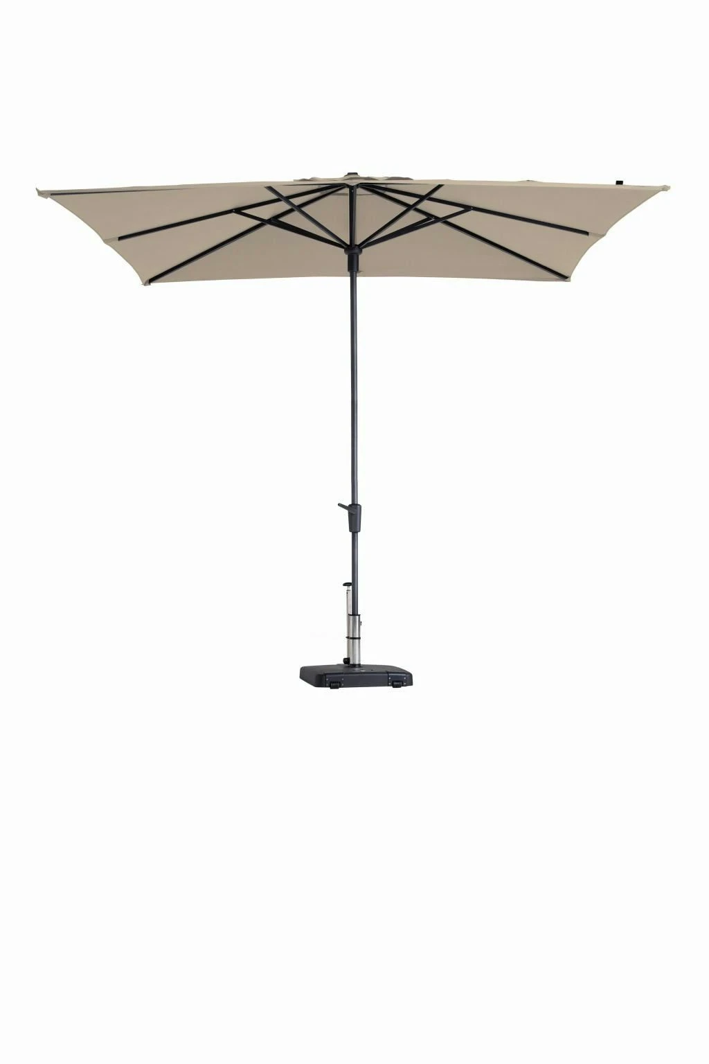 De Madison Syros parasol wordt geleverd exclusief parasolvoet. Wij raden u aan om een voet te gebruiken van 40 kg.