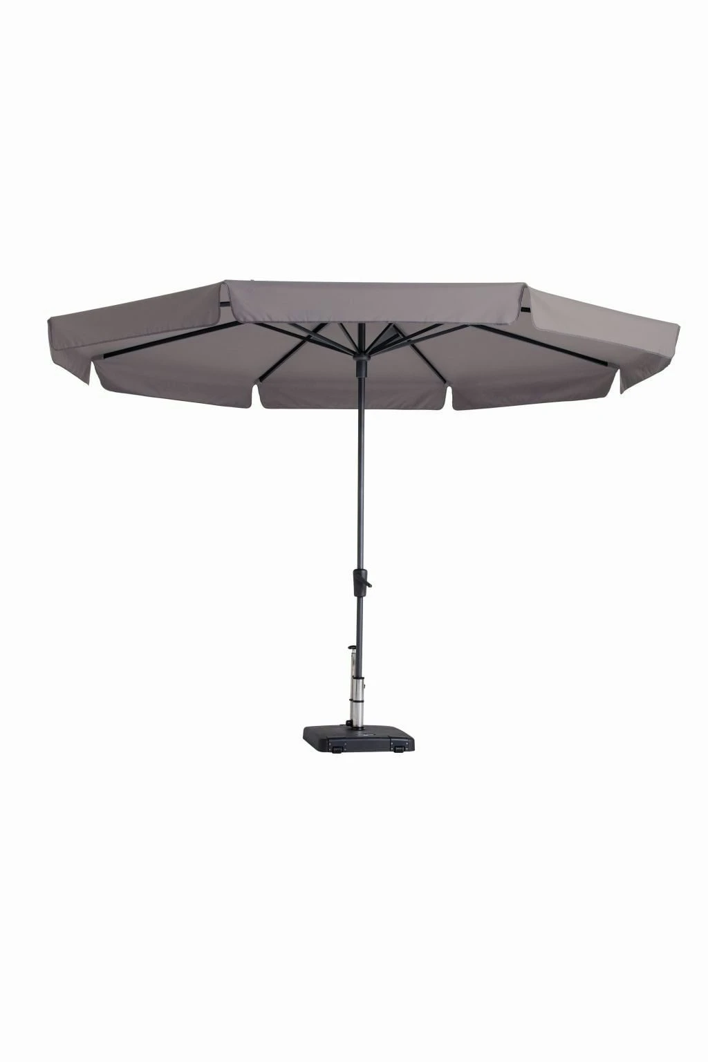 De Madison Syros parasol wordt geleverd exclusief parasolvoet. Wij raden u aan om een voet te gebruiken van 40 kg.