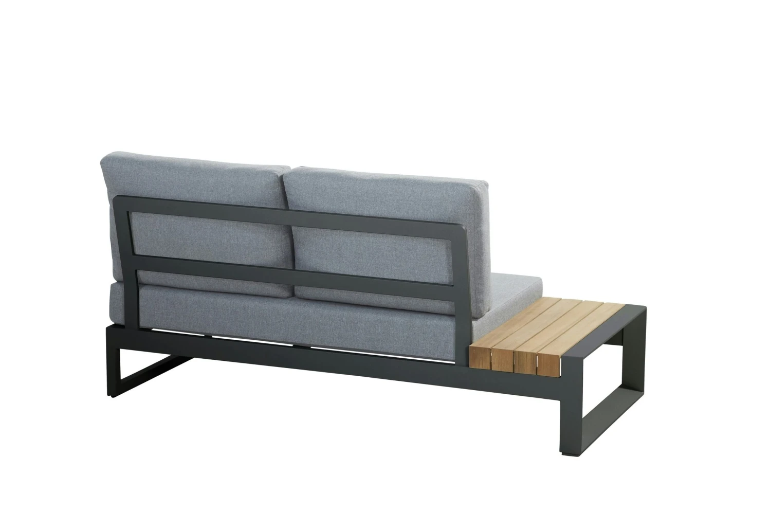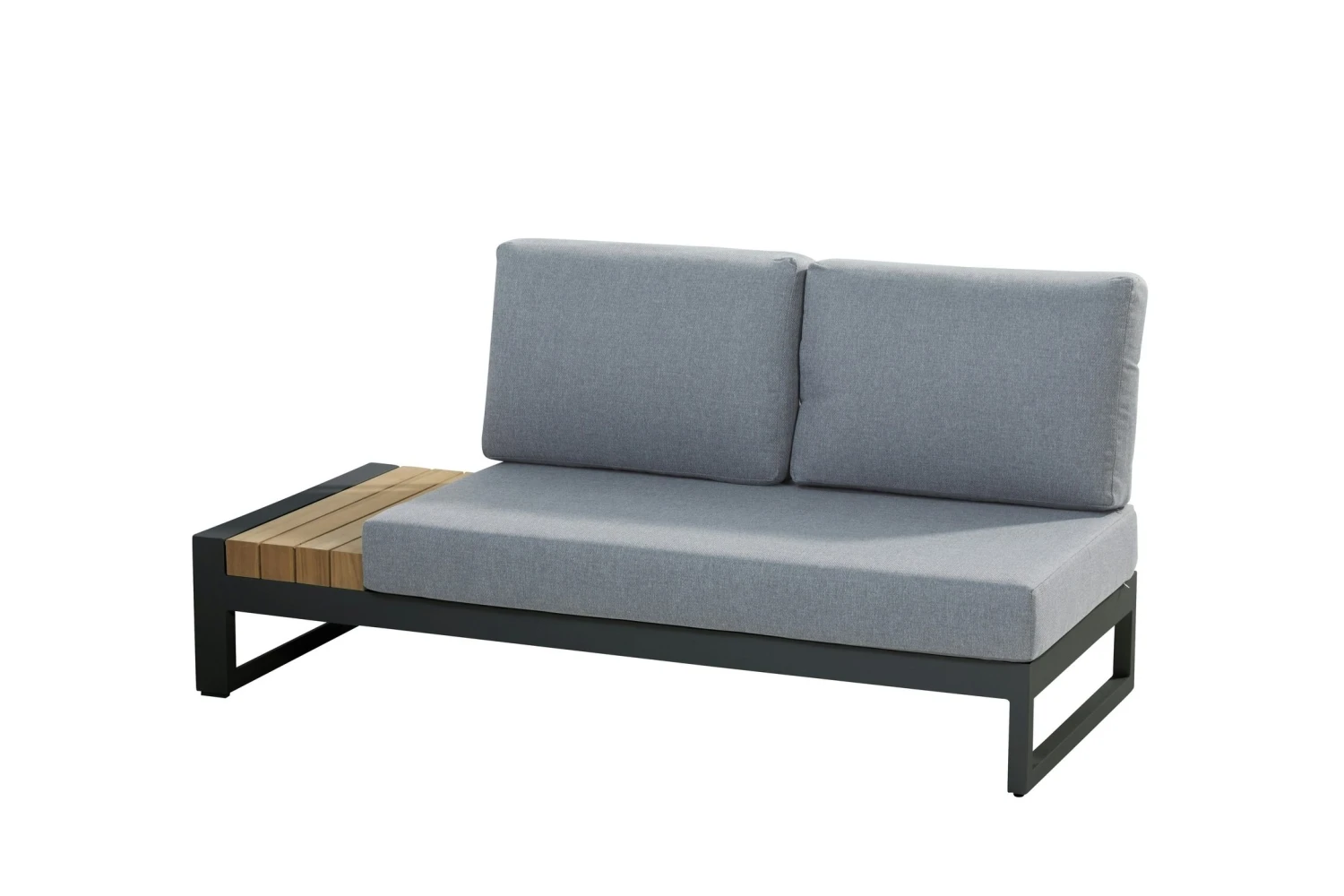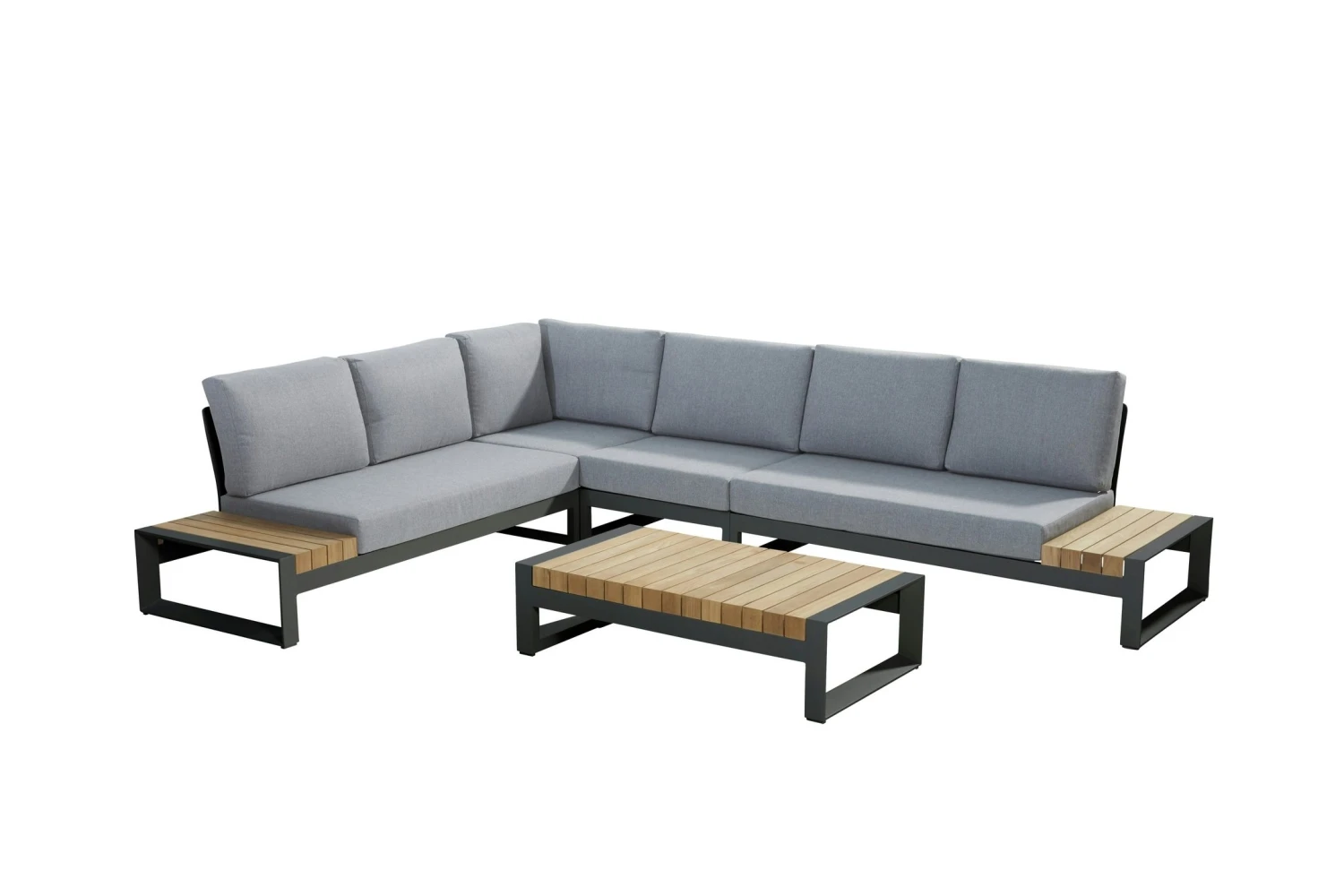Wat opvalt zijn de optisch dikke teak delen in de platform delen en in de salontafel. Dit geeft de Matisse een premium uitstraling. In de Matisse hoekbank liggen comfortabele all weather loungekussens die heerlijk aanvoelen en tevens bestand zijn tegen een regenbui.