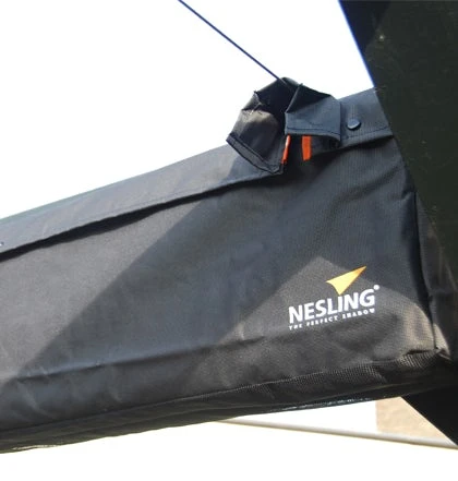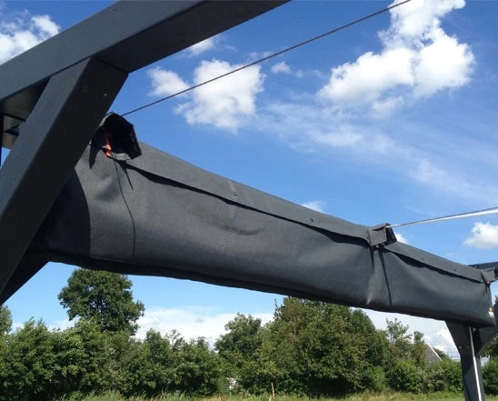 Gaten in de hoes komen overeen met de plaats van de kabels van de Nesling Coolfit harmonicadoeken. De beschermhoes is gemaakt van acryl en door de open structuur aan de onderzijde zorgt deze voor een goede ventilatie.