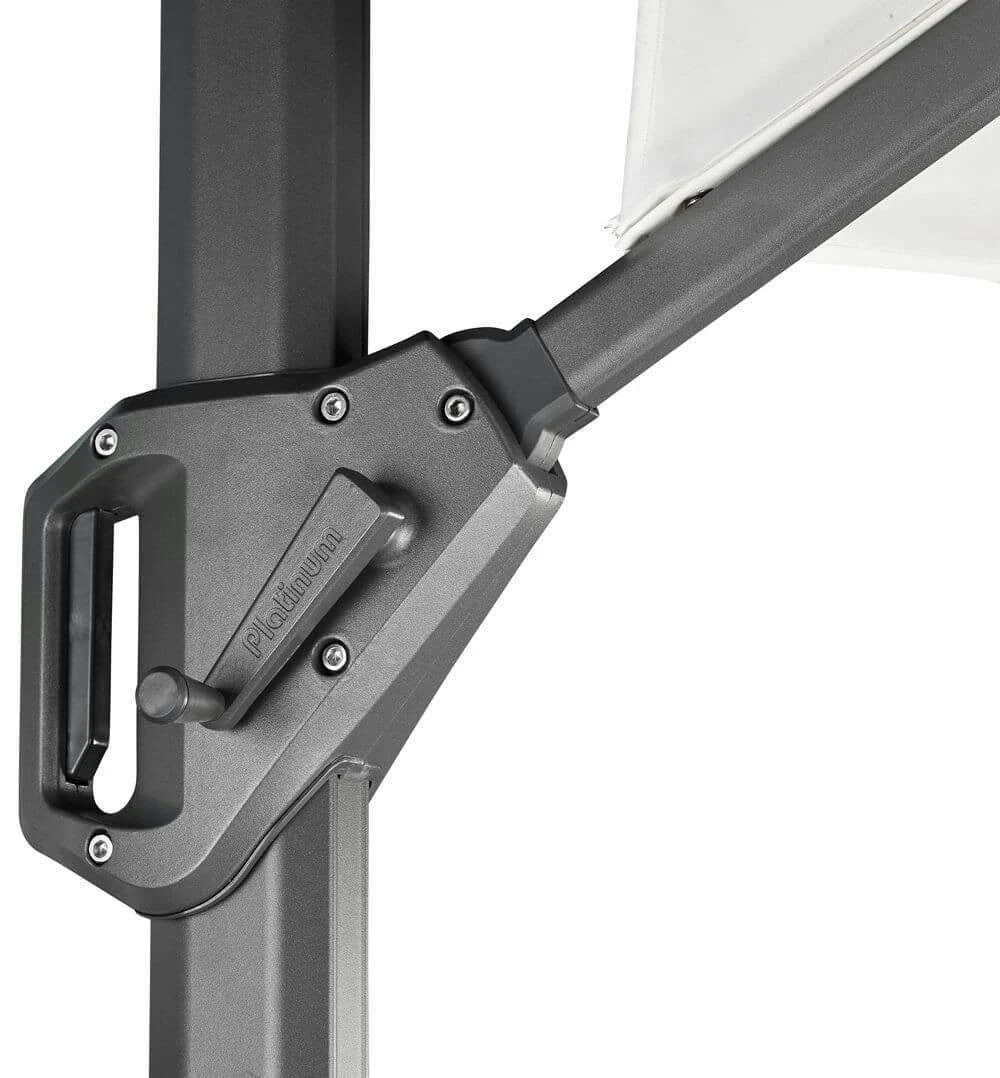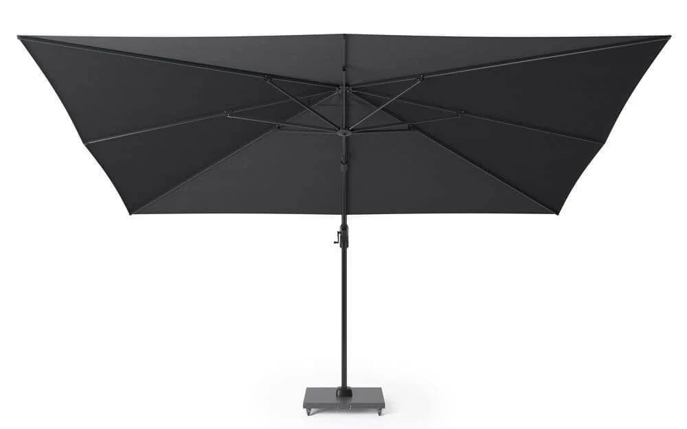 De Challenger T1 zweefparasol is met zijn luxe looks, sterke baleinen en gegoten aluminium handvat een zeer betrouwbare parasol. Deze geheel uit aluminium vervaardigde parasol kan achterwaarts kantelen en is voorzien van een voetpedaal waarmee de parasol 360 graden gedraaid kan worden.