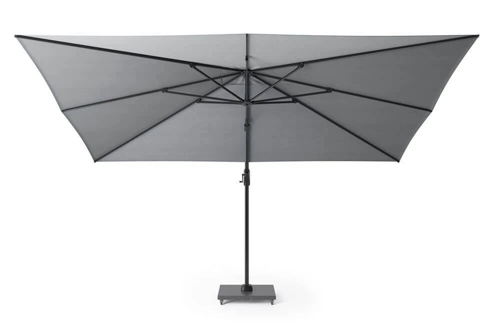 De parasol wordt geleverd exclusief parasolvoet en hoes. Het advies voor deze parasol is een voet van minimaal 120 kg. Om de levensduur te verlengen adviseren wij om een hoes te gebruiken als de parasol niet gebruikt wordt.