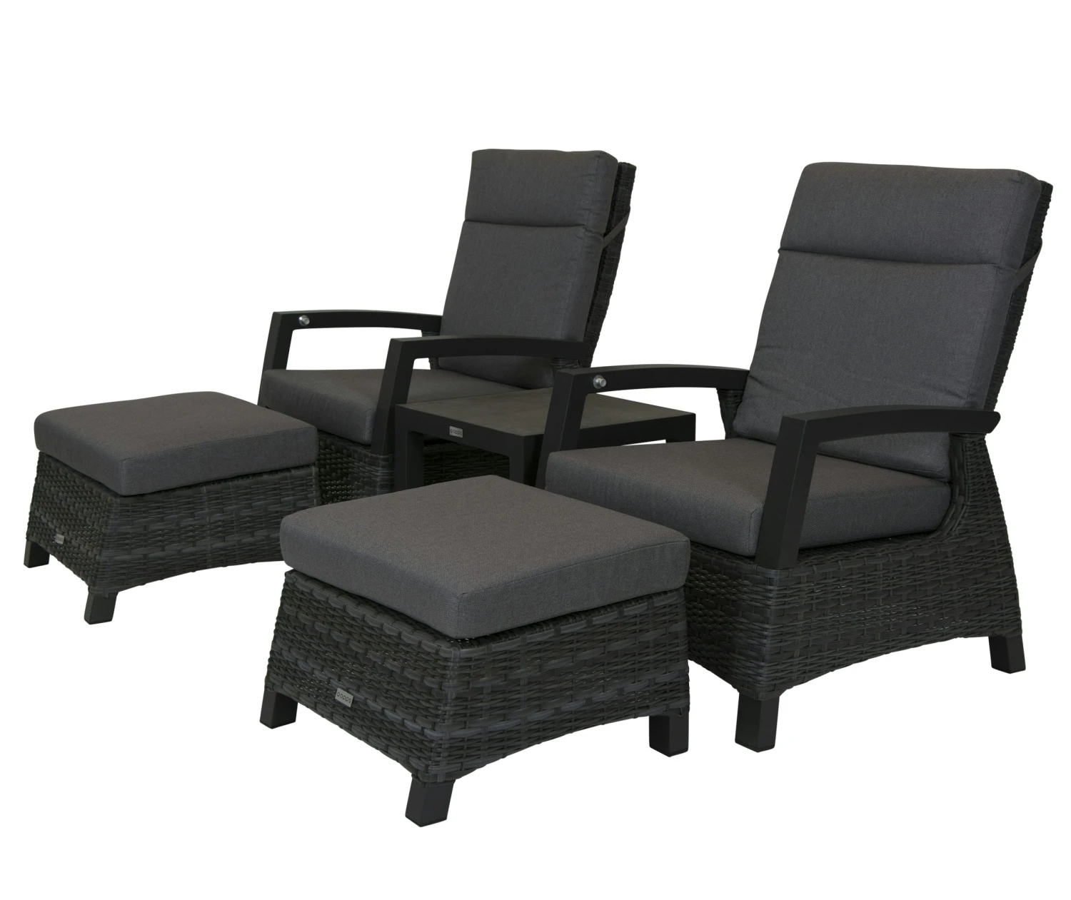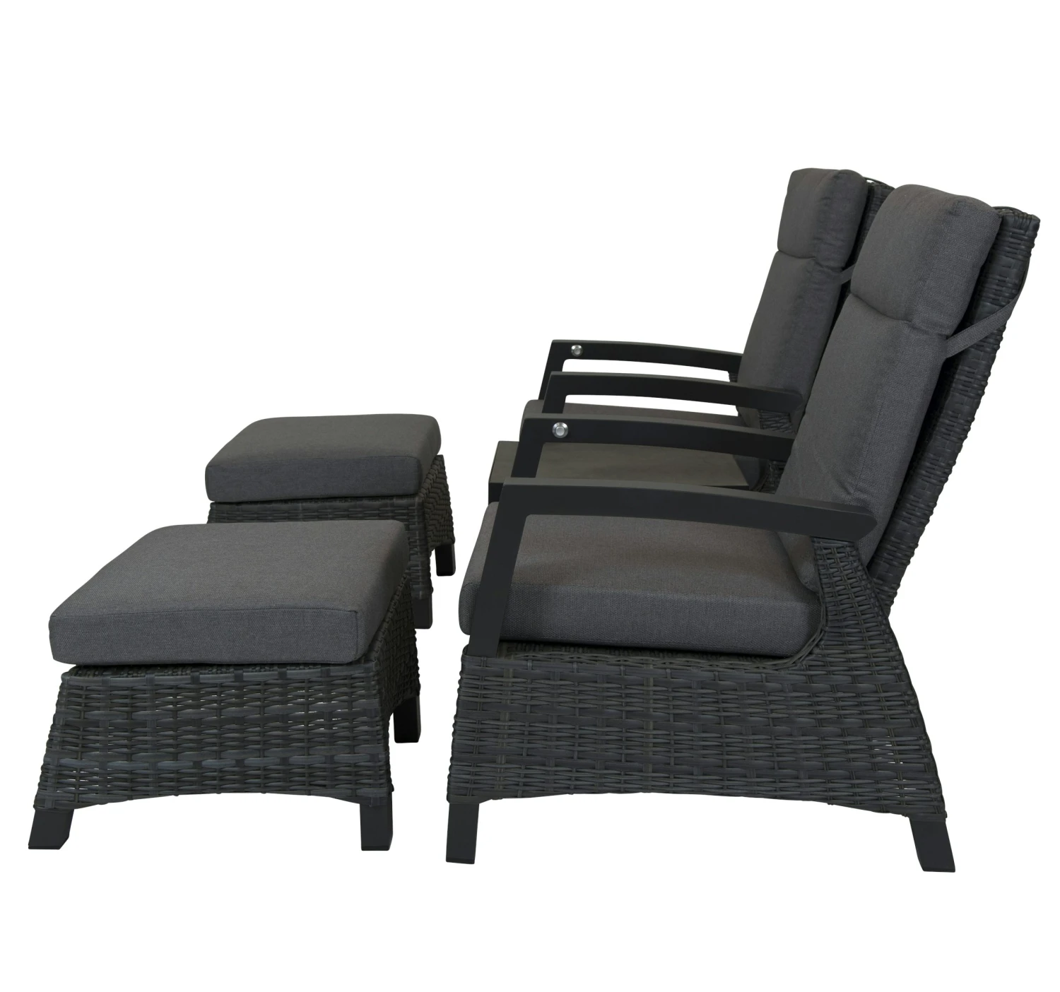 Set van 2 Lounge stoelen Darwin met 2 voetenbanken en bijzettafel Atlanta