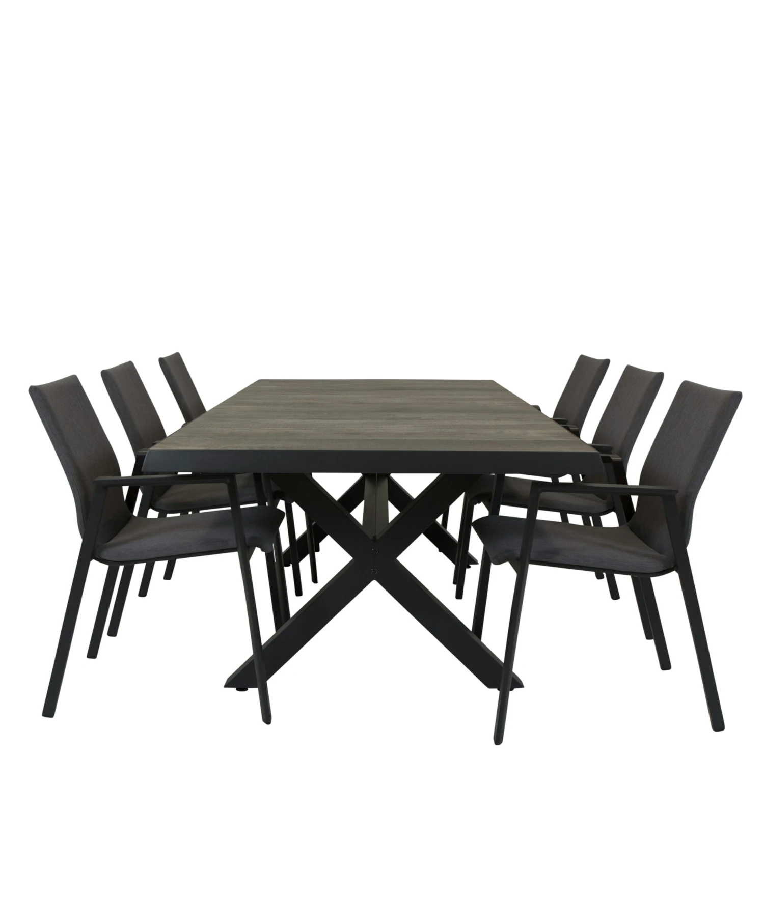 Admiral is een stoere tafel, geschikt voor veel tafelplezier. De tafel staat zeer stabiel door een kruispoot onderstel. Dit onderstel heeft een poedercoating in de kleur Royal grey. Aan de lange kant van de tafel passen 6 stoelen. Ook aan de uiteinden van de tafel kunnen stoelen gezet worden. Als je hier gaat zitten heb je geen last van een onderstel of frame. Het blad van de Admiral tafel heeft keramische tegels van 20cm breed. Deze tegels zijn zeer goed weer en kras bestendig. De tegels zitten vast gelijmd zodat ze niet verschuiven of er uit kunnen vallen. De Admiral tafel kan gecombineerd worden met allerlei soorten stoelen. Wicker, aluminium of een moderne kunststof kuipstoel. De Admiral tafel is 224cm lang,104 cm breed en is 74 cm hoog.