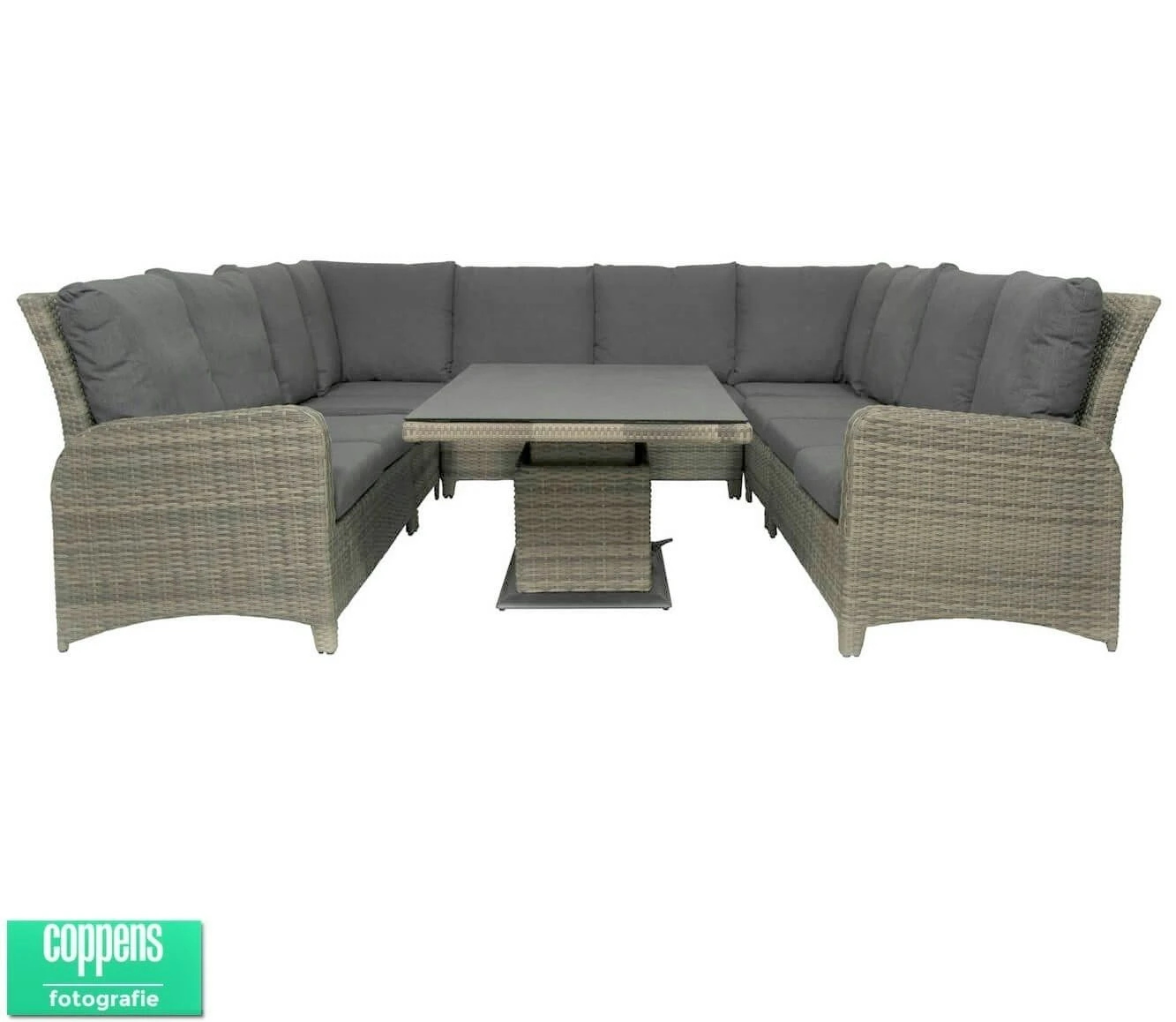 Met de Aruba serie kun je eigen lounge dining set samen stellen in elke opstelling mogelijk. Afmeting zoals de loungehoek op foto 280,50 x 288 x 280,50 cm