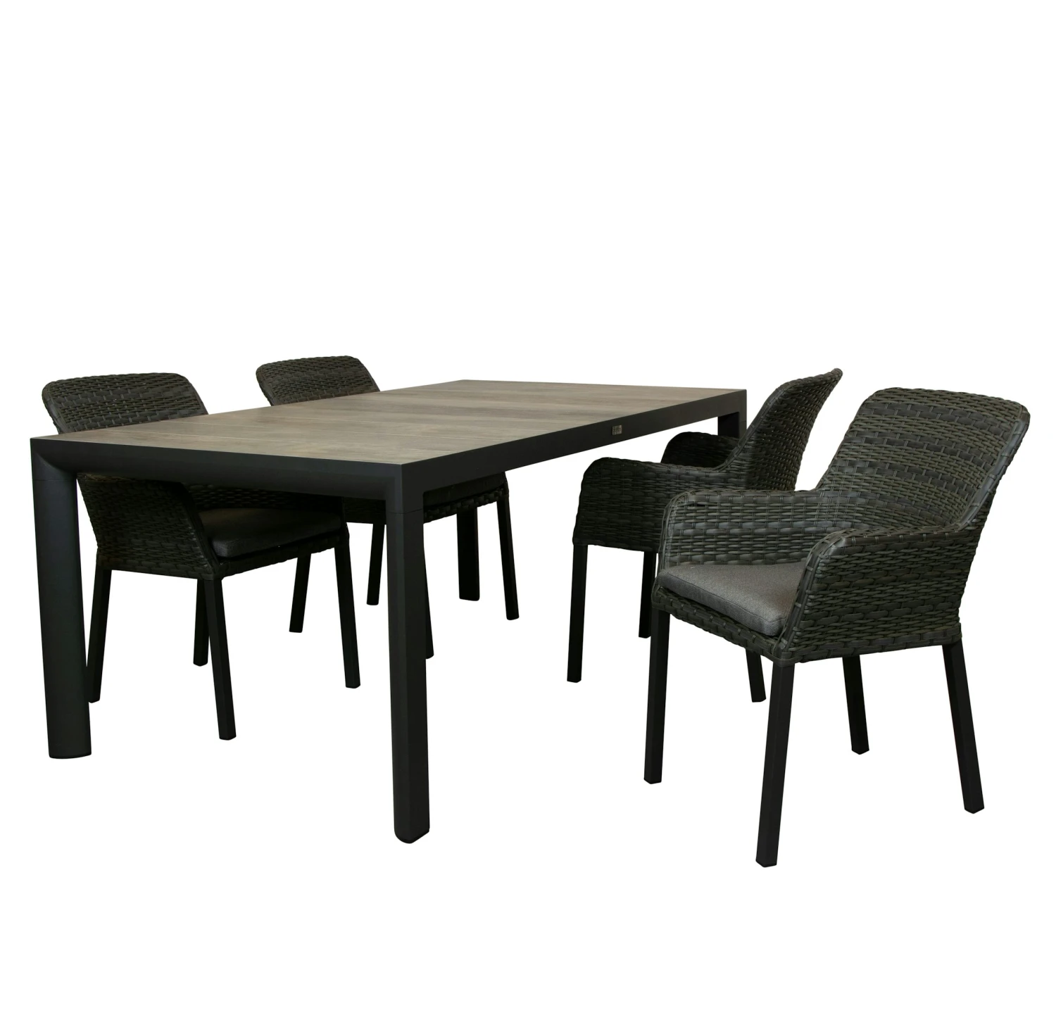 Deze Riverside dining tuinstoel is een mooie combinatie van vlechtwerk met aluminium. Het frame is van onderhoudsvriendelijk aluminium, gepoedercoat in mat royal grey. Dit past mooi bij het antraciet vlechtwerk. Het vlechtwerk heeft draden van verschillende breedtes.