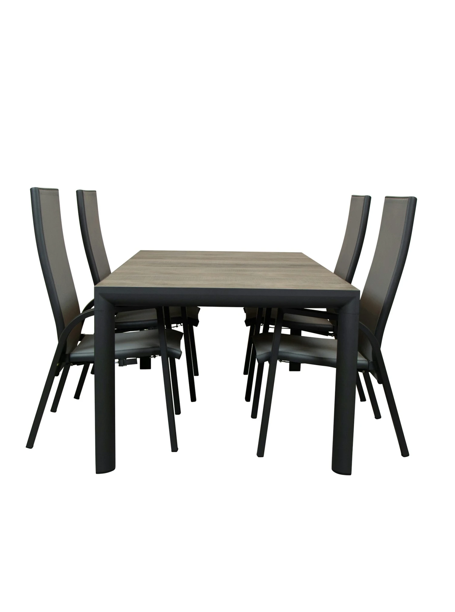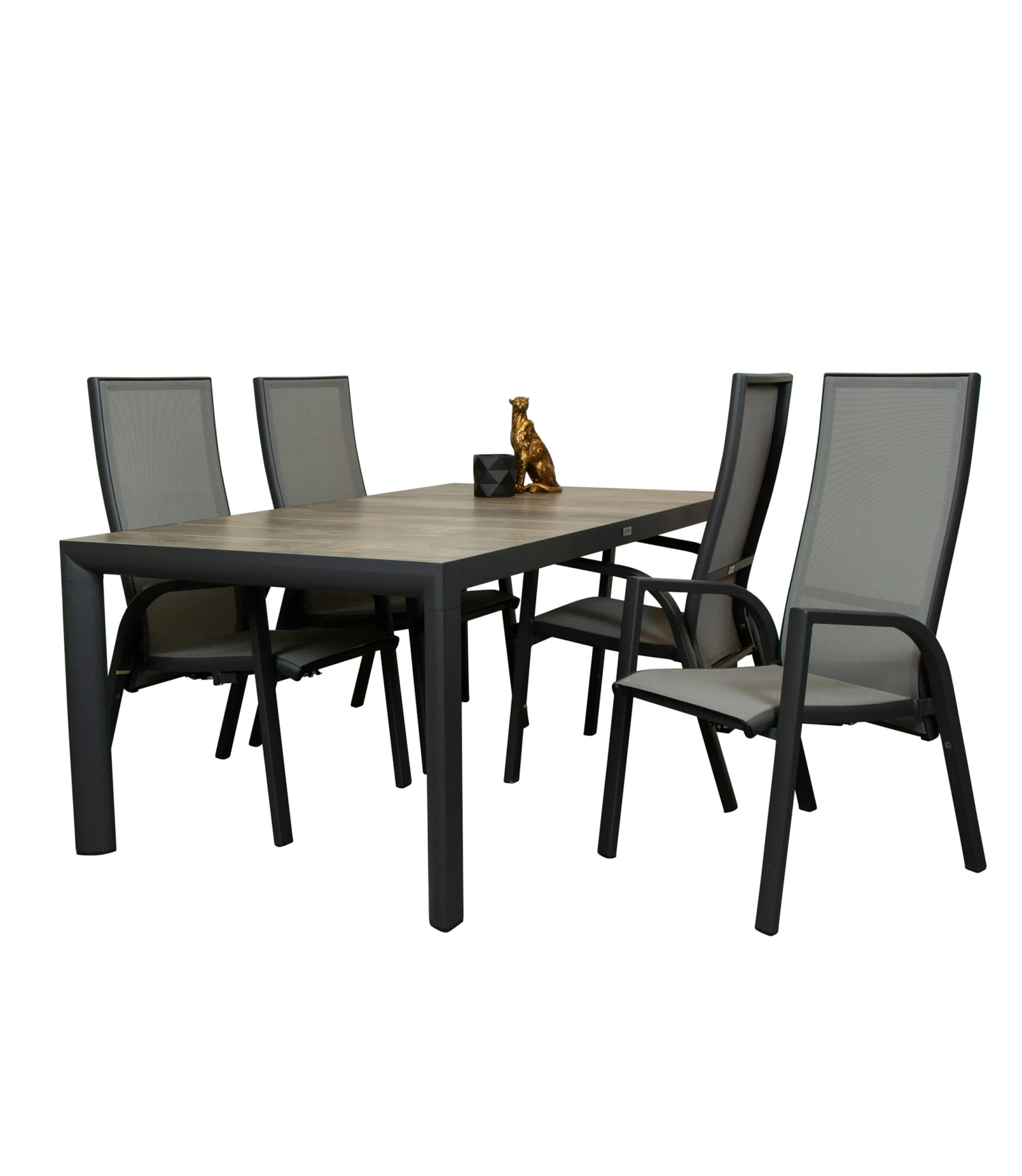 De Kings tafel is een eigentijdse tafel met mooie rechte hoeken. Deze tafel is te combineren met allerlei soorten dining stoelen. Het aluminium frame is onderhoudsvriendelijk en gepoedercoat in de kleur antraciet. Het blad is van ceramische tegels wat inhoudt dat het makkelijk in onderhoud en zeer kras bestendig is.