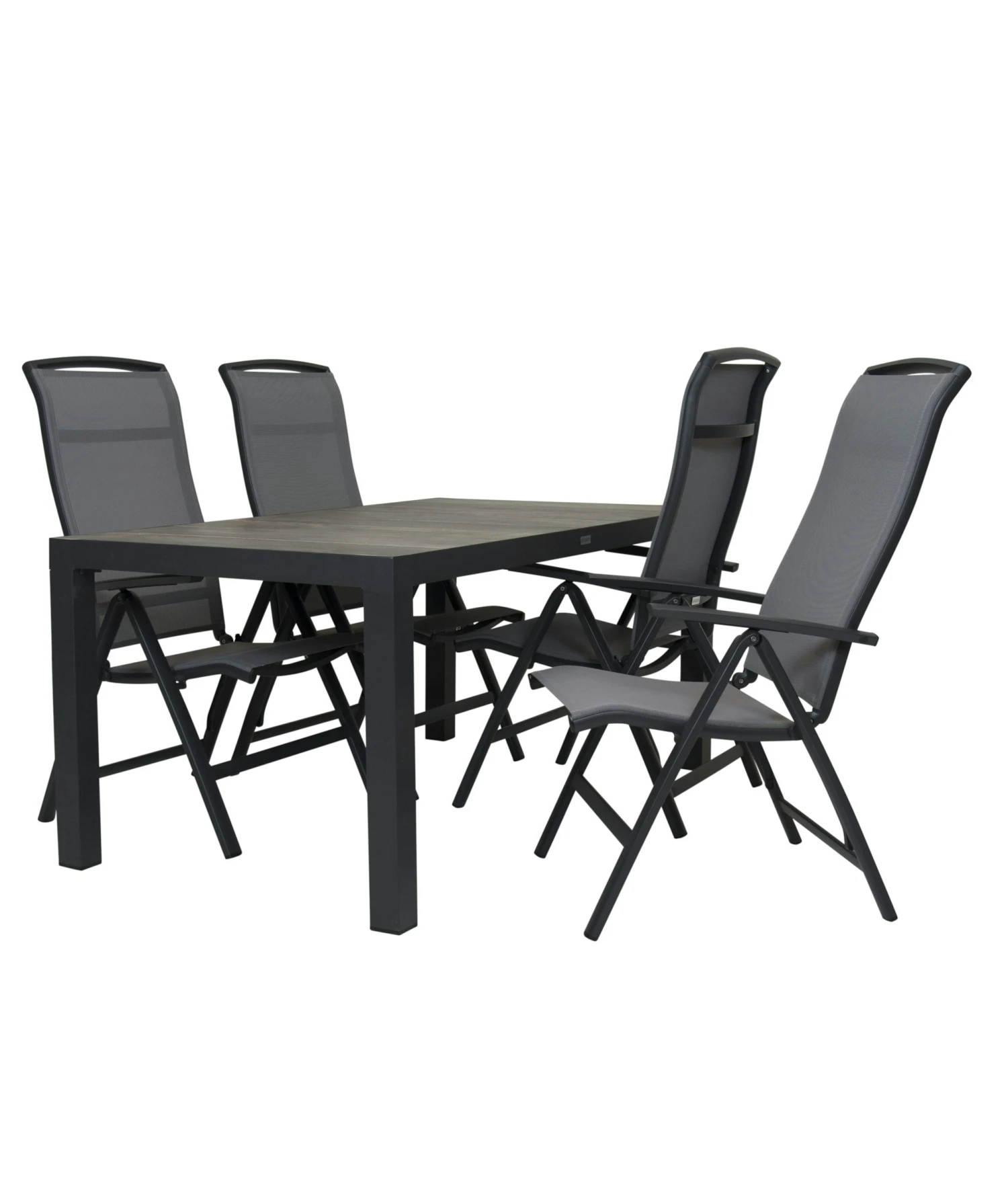 Het Aluminium frame is gepoederdcoat, mat Antraciet met strakke vierkante poot. Het blad is van onderhoudsvriendelijke keramische tegels.