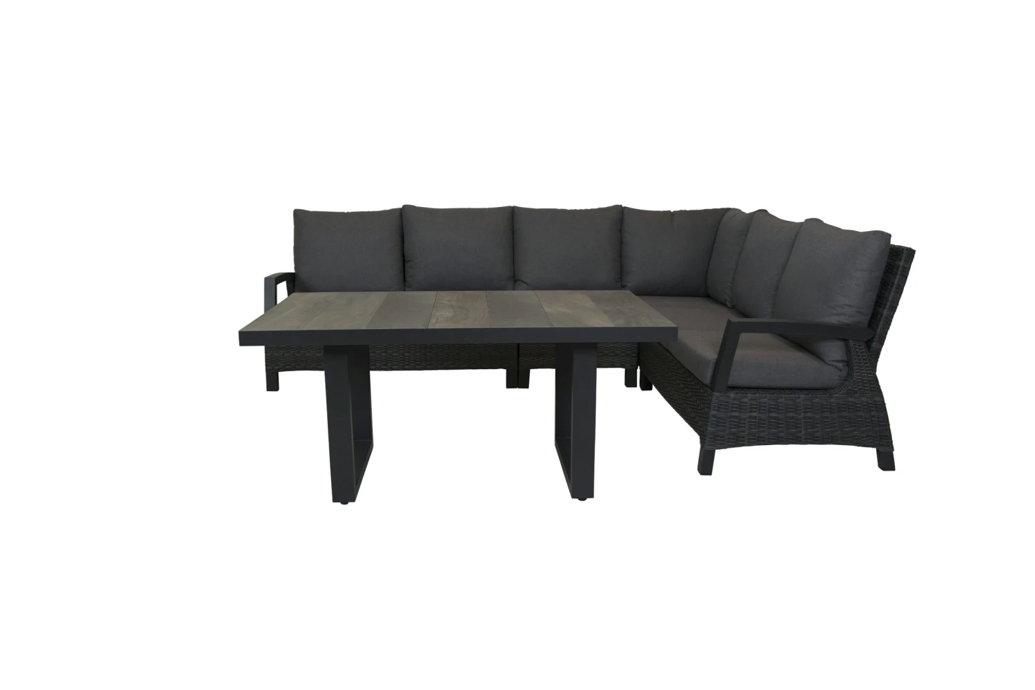Deze Darwin lounge dining tafel 140 x 85 is ideaal te combineren met de Darwin lounge serie. Door zijn hoogte van 65 cm kun je er makkelijk aan eten en is ook goed te gebruiken bij het loungen. Het frame van deze tafel is gepoederdcoat in de kleur Antraciet en is onderhoudsvriendelijk. Het blad is van keramische tegels wat die zeer sterk en kras vast zijn. Deze tafel is zeer stabiel door zijn U poot en is overal mee te combineren.
