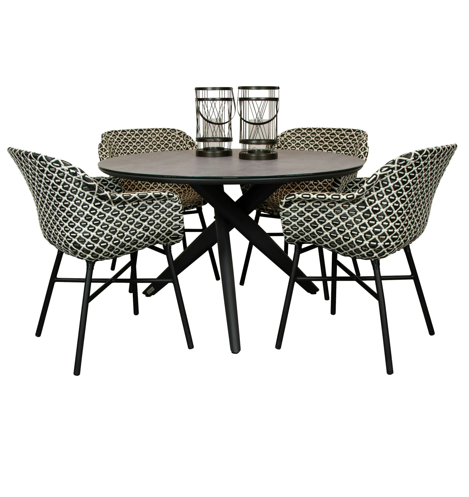 Tuinset 4 Hartman Delphine tuinstoelen en tuintafel Zukla 120cm rond