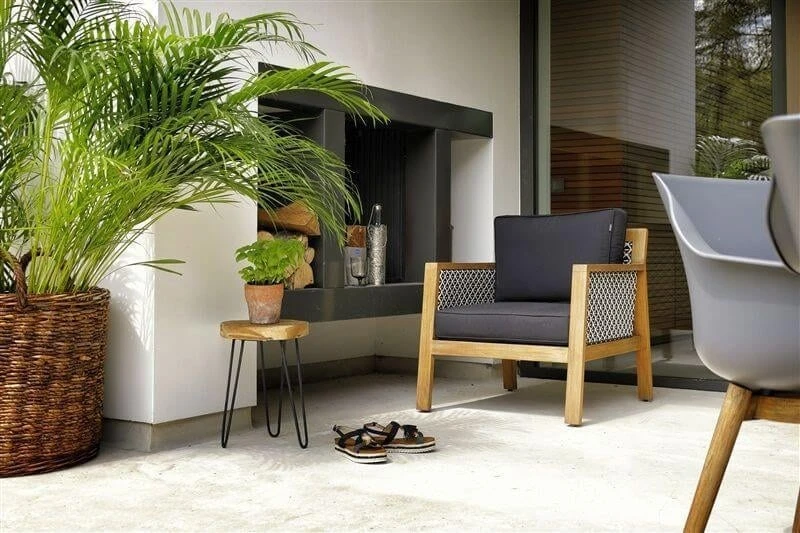 Mocht er een keer een regenbui vallen? Geen probleem! De materialen zijn onderhoudsarm en gelukkig blijft er geen water in de kuip staan door de twee gaatjes in de stoel (trechtersysteem).
