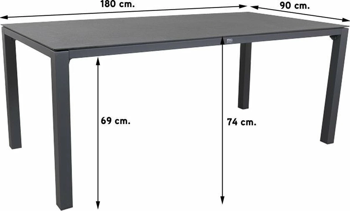 Deze tafel Stoneo 180 x 90 cm kwalitatief hoogst haalbare in tuintafels. Deze tafel heeft een aluminium onderstel met poten van 5 x 5 cm. Het blad is van origineel Trespa met een leisteen look dat onderhoud vriendelijk is en kan tegen alle weersomstandigheden en hoeft alleen maar met een vochtig doek schoongemaakt worden. Deze tafel heeft 3 jaar garantie.