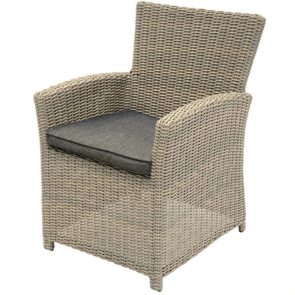 De Lesli dining stoel Tropez is een hele fijne stoel. Deze stoel heeft een luxe halfrond vlechtwerk van 5 mm. Het vlechtwerk heeft als kleur kubu grijs. De stoel is heel goed te combineren met verschillende tafels, dat komt doordat het een hele natuurlijke kleur heeft. Bij de stoel zitten ook grijze design kussen. Dit maakt deze stoel een hele praktische dining stoel.