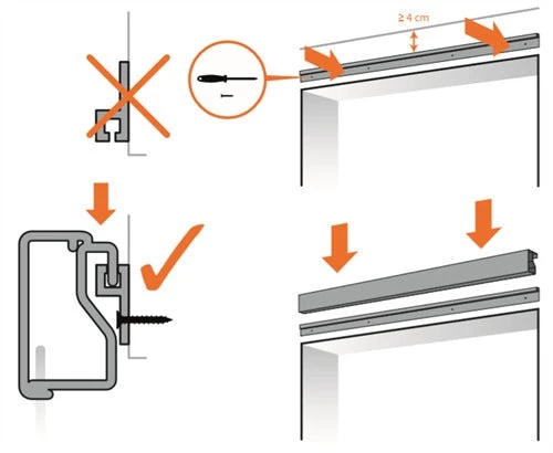 let op; Standaard ophangprofiel wat meegeleverd wordt is een h-profiel wat je plaatst op de dag van het kozijn en hier hang je dan het vliegengordijn in. Mocht het in de dag van het kozijn of aan het plafond bevestigt worden dan heb je een L-plafond profiel nodig. Dit kun je apart vermeld tijdens het online bestellen in de opmerking.
