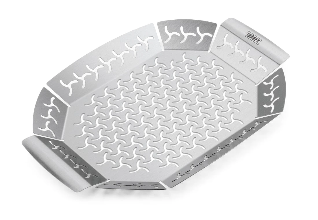 Fruit en grill uien, pepers, of andere kleine bijgerechten terwijl de steak ernaast gaar wordt. De Premium grillkorf biedt plaats aan grote hoeveelheden groenten, fruit, of garnalen en geeft uw voedsel die onmiskenbare barbecuesmaak.